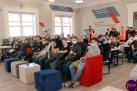 Силами студентов была оборудована фотозона со строительными атрибутами. Чтобы увлечь и организовать школьников был проведен «Строительный квиз», по итогам которого команда победителей получила особый приз.