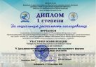 Тем не менее, Дипломом I степени работа была оценена только на секции Medical english contest (научные руководители работы: проф. каф. «Техносферная безопасность», доктор биологических наук, доцент Е.Д. Целых и ст. препод. каф. «Иностранные языки и межкультурная коммуникация» Т.Н. Тагирова, Дальневосточный государственный университет путей сообщений).