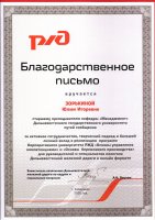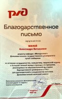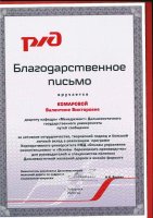 Благодарственное письмо «За профессиональную, безупречную и плодотворную работу в 2020 году» от Федерального агентства железнодорожного транспорта получила кандидат экономических наук, доцент кафедры «Менеджмент» Валентина Викторовна Комарова.