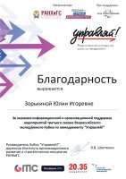- Зорькиной Юлии Игоревне (старшему преподавателю кафедры «Менеджмент»);