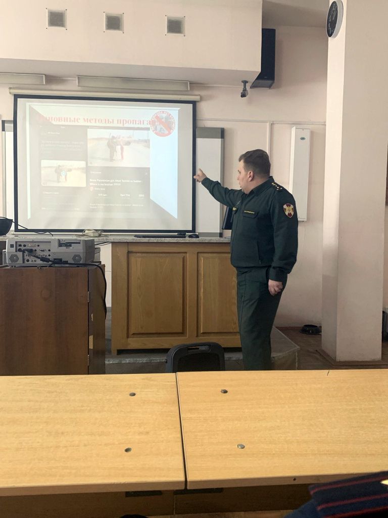 01.04.25. Кафедрой «Фи ТМ» была организована встреча с сотрудниками управления Росгвардии по Хабаровскому краю. Майор Луцанич Дмитрий Юрьевич и капитан Лиманец Иван Яковлевич, провели урок по профилактике терроризма и экстремизма среди студентов университета. В ходе мероприятия обсуждались важные вопросы профилактики терроризма и экстремизма среди молодежи. Особое внимание сотрудники Росгвардии уделили угрозам, связанным с распространением экстремистских идей через социальные сети. Иван Яковлевич подчеркнул, что злоумышленники часто используют популярные мессенджеры для вербовки молодых людей, призвав студентов быть бдительными, избегать посещения подозрительных страниц и общения с незнакомыми людьми, а также не распространять сомнительный контент. На мероприятии присутствовало 95 человек, группы (БО911БЖД, БО911ТВ, СО211ОПЛ, СО211ОПМ, БО211ПИН, СО111ЛОК, СО111ЭТЖ,)