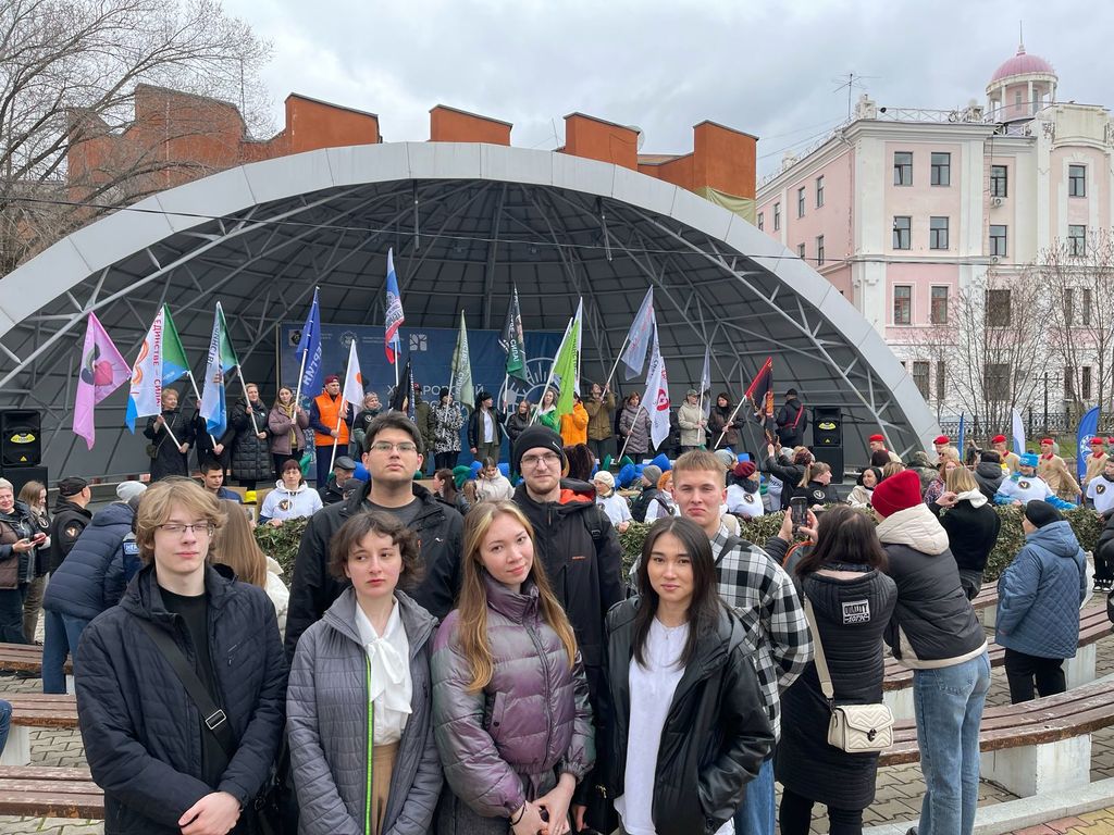 27.04.25 Кафедрой «Ф и ТМ» было организован коллективный выход студентов на городское мероприятие, посвященное работе волонтеров и поддержке участников СВО. Флешмоб «В ЕДИНСТВЕ СИЛА» состоялся на территории Хабаровского краевого парка имени Н.Н. Муравьева - Амурского. В рамках данного мероприятия был организован сбор гуманитарной помощи для военнослужащих. Помимо благотворительной акции, для гостей была организована концертная программа, подготовленная творческими коллективами города, а также мастер-классы и интерактивные площадки от учреждений культуры. На мероприятии присутствовали студенты ЕНИ, группы: БО911ТВР, БО911ПРИ.