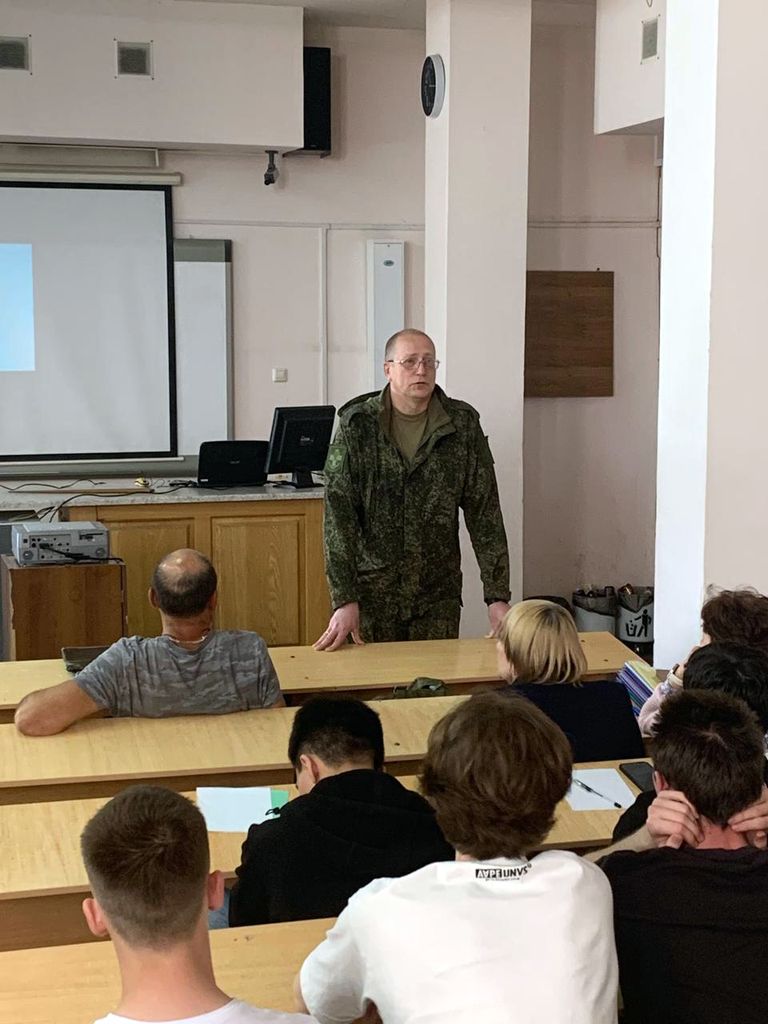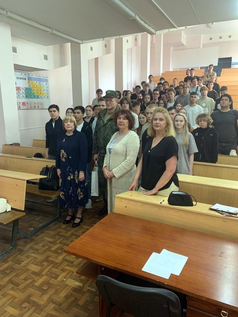 29.05.25 Кафедрой «Ф и ТМ» совместно с руководством ЕНИ был проведен урок мужества – «Разговор о главном». Гостем мероприятия был военный врач хирург Константин Владимирович Л. Просмотр фильма о работе медицинского подразделения, дал полную картину как проходят будни врачей и вспомогательного персонала на СВО. Константин Владимирович отметил, насколько важна первая медицинская помощь при ранениях. Рассказал о многофункциональности госпиталя, где проводят жизненно важные операции. О той огромной помощи, которую оказывают волонтеры. На мероприятии присутствовали студенты ДВГУПС, группы: БО911ТВР, БО911ПРИ, БО9111ПИА, СО211ОПМ, СО212ОПМ.