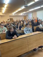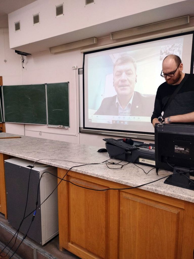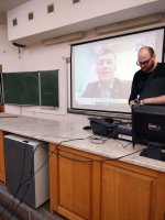 3. 28.11.2024 Разговор с учёным-физиком: научно-популярная лекция-беседа «Мой путь в науке». В интересной диалоговой форме состоялась лекция-беседа Криштопа Виктора Владимировича. Учёный рассказал свой путь в науке, а также на основе фотографий и презентации рассказал какими современными проблемами физики и разработками занято научно-производственное предприятие, расположенное в Перми. В аудитории 3434 кафедры «ФиТМ» собралось около 100 человек – преподавателей и студентов, разных курсов и Институтов.