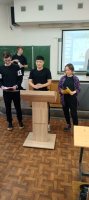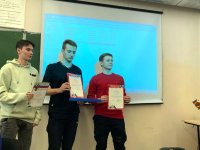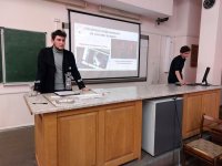 3) Конкурс студенческих докладов по фундаментальным проблемам физической науки (в рамках 1 тура студенческой конференции). Наконец завершающий этап «Недели физики» состоял в проведении студенческой конференции. Студенты самостоятельно выбирали, интересующие их темы, консультировались у преподавателя, и представляли свои доклады на конференции. 1 тур конференции был проведен в свободное от учебы время, в аудитории с компьютерным сопровождением для всех желающих. Было заслушано 6 докладов. Всего выступило 10 студентов из разных институтов (ЭЛЭИ, ИУАТ, ИТС). Итоги конференции подвел профессор кафедры «ФиТМ» Д.С. Фалеев.