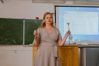 Доклад вызвал большой интерес среди слушателей. Были заданы вопросы о методах получения максенов, результатах испытаний максеновых препаратов для борьбы с онкозаболеваниями на грызунах. Ребята интересовались возможностями для молодых исследователей, которые предоставляются в Московском физико-техническом институте и в нашей стране в целом.