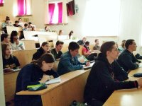3) Конкурс студенческих докладов по фундаментальным проблемам физической науки (в рамках 1 тура студенческой конференции). Наконец завершающий этап «Недели физики» состоял в проведении студенческой конференции. Студенты самостоятельно выбирали, интересующие их темы, консультировались у преподавателя, и представляли свой доклад на конференции. Турнир был проведен в свободное от учебы время, в аудитории с мультимедийным сопровождением. Всего в конференции присутствовало 67 человек из разных институтов. Были заслушаны доклады по современным проблемам науки: использование альтернативных источников энергии, влияние электромагнитного излучения сотового телефона и компьютера на человека, органические ресурсы как источник тока (картофель). Было заслушано 5 докладов. Итоги конференции подвел профессор кафедры «ФиТМ» Д.С. Фалеев.