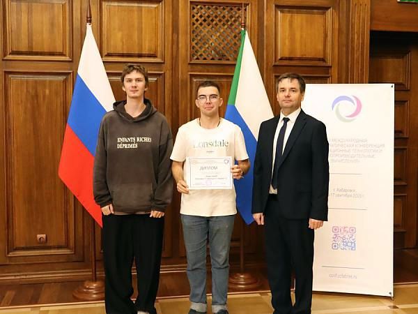 Руководитель Отдела научно-образовательных программ Хабаровского Федерального исследовательского центра ДВО РАН Ю.А. Озарян отметила команду Дальневосточного государственного университета путей сообщения «Легенды StandOff» (С. Калашников, Н. Дементьев и Г. Медовник) дипломом за высокий уровень представленной научной работы.