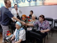 11 мая 2022 г. куратором групп БО911ПМИ и БО911ИСГ Кругликовой Ольгой Валерьевной совместно с работниками центральной городской библиотеки им. П. Комарова была организована встреча студентов с председателем первичной ветеранской организации Индустриального района г. Хабаровска Хегай Ольгой Александровной и представителями организации «Дети войны». Ольга Александровна рассказала о тяжелом военном и послевоенном детстве, объяснила разницу между участниками войны и тружениками тыла, поведала о том, чем занимается их организация в настоящее время. Совместно со студентами и работниками библиотеки, дети войны читали стихи и пели военные песни. В конце встречи студенты подарили участницам беседы цветы и небольшие подарки, договорились о новой встрече.