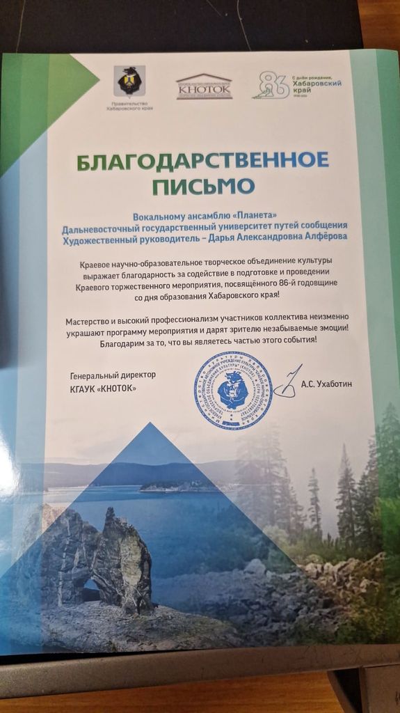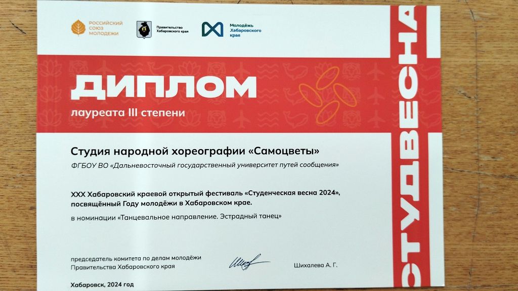 XXX Хабаровский краевой открытый фестиваль «Студенческая весна – 2024» (21 диплом I и II степени в различных номинациях), Гран-при «Музыкального направления» и Гран-при направления «Студенческая журналистика»,